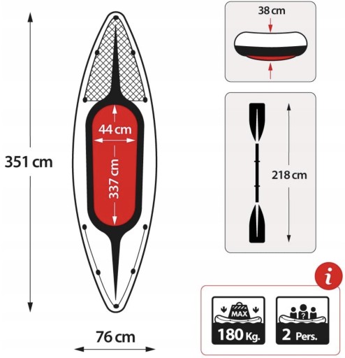 ⭐️Nawet w przypadku uszkodzenia jednej z komór, druga pozwala utrzymać kajak na powierzchni wody.