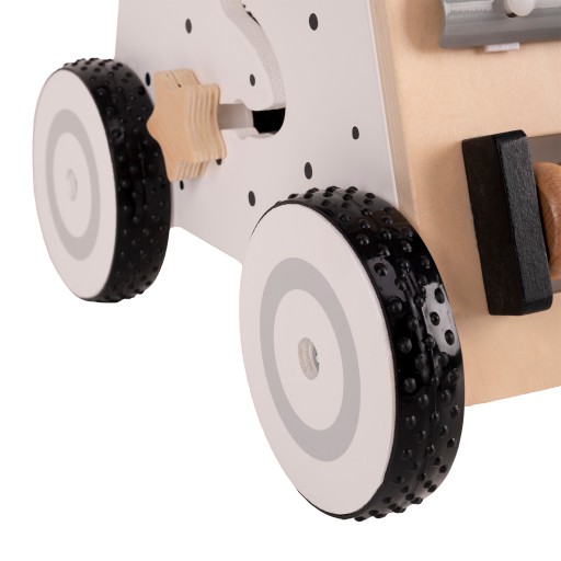 Solidny chodzik to nie tylko narzędzie pomocne przy nauce chodzenia, ale także interaktywne centrum zabaw, które wspiera rozwój umiejętności motorycznych dziecka. Każda ściana chodzika jest wyposażona w różne aktywności, co sprawia, że zabawa jest interesująca i rozbudza kreatywność malucha: