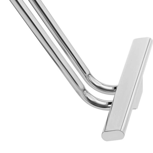 Stelaż fotela fryzjerskiego wykonano z wytrzymałej i eleganckiej stali nierdzewnej. Stabilna konstrukcja bezpiecznie utrzymuje obciążenie 200 kg i zapewnia oparcie krzesła oraz wysoką trwałość. Duża podstawa o średnicy 45 cm dodatkowo zwiększa stabilność. Gładkie powierzchnie ze stali nierdzewnej podkreślają stylowy wygląd.