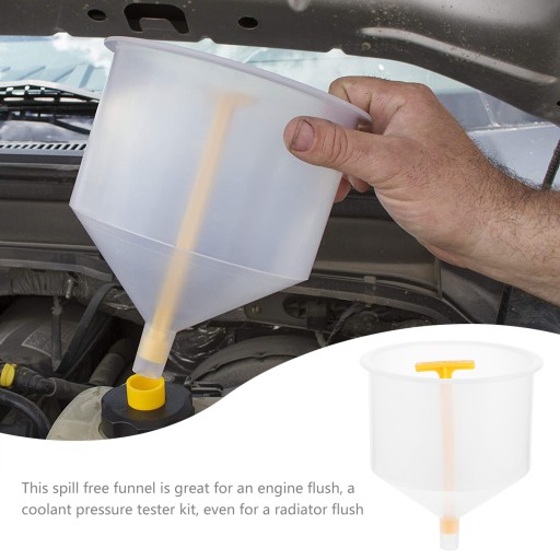 Długi lejek zapobiega rozlaniu i uwięzieniu powietrza podczas uzupełniania po przepłukaniu chłodziwa.