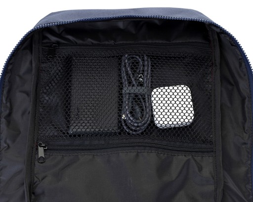 W przedniej części plecaka znajduje duża kieszeń zapinana na zamek.