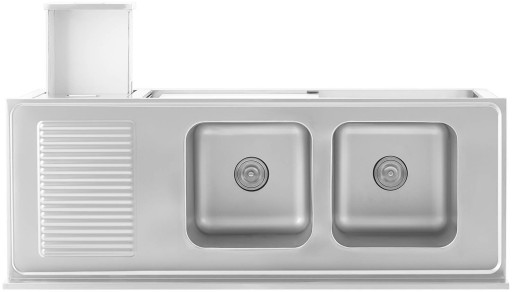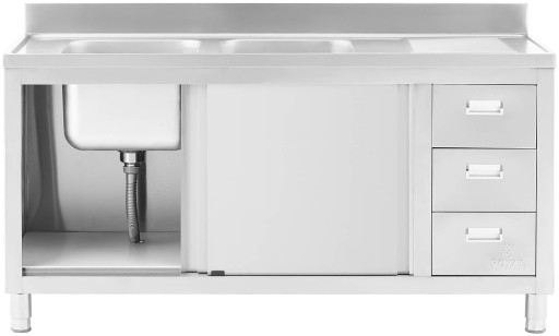 Zlew basen gastronomiczny dwukomorowy z szafką z drzwiami przesuwnymi szufl
