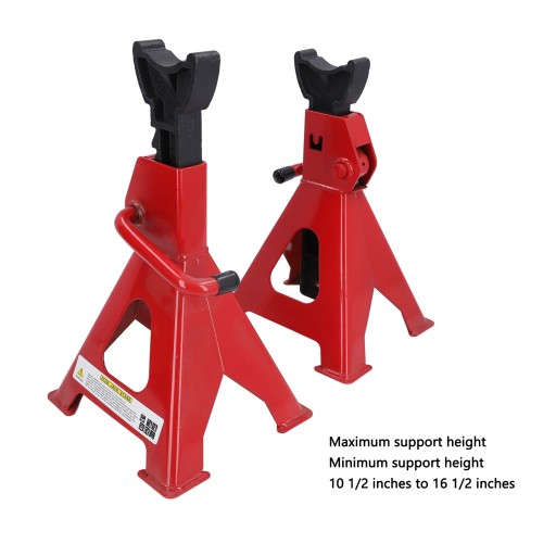 3. REGULOWANA I OBCIĄŻONA POJEMNOŚĆ: Podpórka oferuje regulowany zakres wysokości od 10 1/2 cala do 16 1/2 cala, wytrzymując tak ogromne adunki do 2 ton (4000 funtów). Ta elastyczność pozwala na bezpieczne podnoszenie różnych pojazdów.