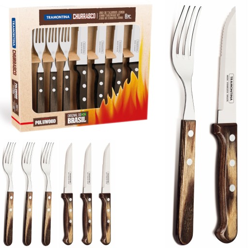 Zestaw sztućców Churrasco Gaucho, karton prezentowy – 8 szt., Tramontina, ciemny brąz, brązowy, 8 pcs