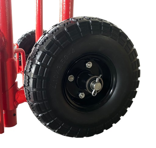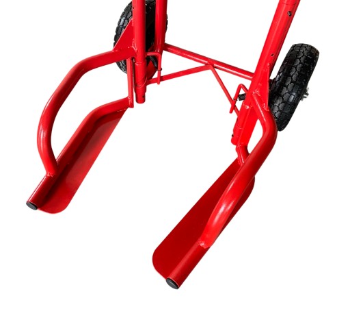 Konstrukcja wózka opiera się na stabilnej, spawanej stalowej ramie rurowej, co gwarantuje nie tylko wytrzymałość, ale także bezpieczeństwo podczas pracy. Regulowane ramiona umożliwiają szybkie i bezpieczne podnoszenie oraz przenoszenie opon, a pełne koła o średnicy 260 mm ułatwiają manewrowanie nawet w trudnych warunkach terenowych.