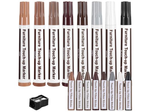 Naprawa następuje poprzez wypełnienie głębszego ubytku woskiem, oraz dorysowanie struktury drewna odpowiednim kolorem markera. Po zastosowaniu zestawu naprawczego nie musisz czekać aż wszystko wyschnie. Markery są szybkoschnące, a powłoka w miejscu naprawy jest odporna na zarysowania.