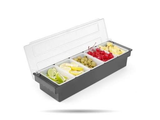 Pojemnik barmański na dodatki do drinków - 5 wkładów, Bar up, czarny, 480x150x(H)100mm