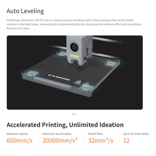 � Sukces dzięki doskonałej pierwszej warstwie: w pełni automatyczne poziomowanie jednym kliknięciem kalibruje i prawidłowo poziomuje łóżko, dzięki czemu jest to idealna pierwsza warstwa do każdego wydruku 3D. Zapewnia dokładną i gładką powierzchnię, aby osiągnąć wysoką jakość druku.