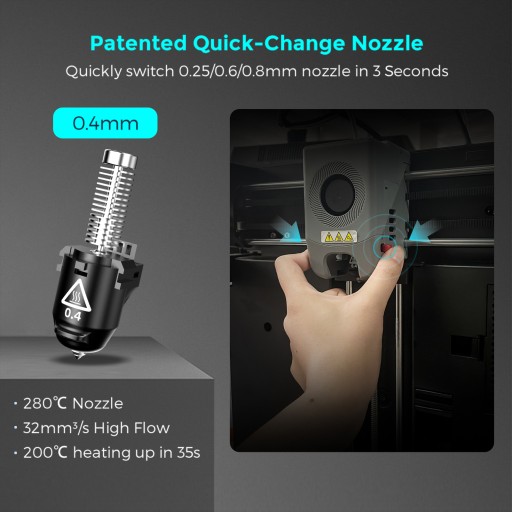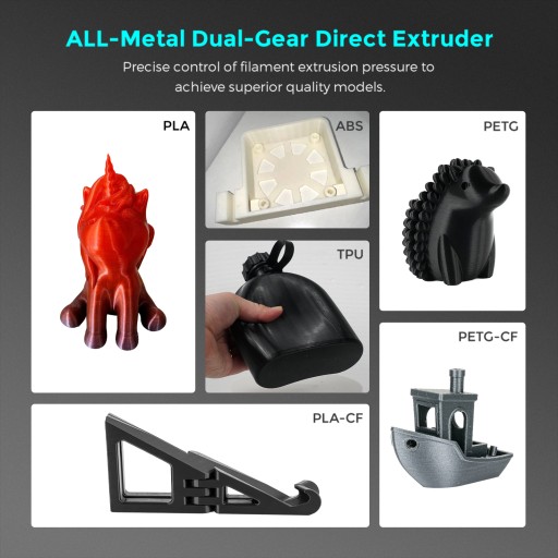 🔝Kompensacja drgań i krótszy czas oczekiwania: kompensacja drgań, eliminacja duchów na wydrukach. Dysza o przepływie 32 mm³/s, mocy grzewczej 50 W, nagrzewaniu do 200°C w 35 sekund. Precyzyjne i spójne wytłaczanie dla gładkich i rozmytych wydruków.