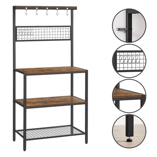 Piekarnik, kuchenka mikrofalowa, ekspres do kawy - wszystko to znajdzie swoje miejsce na kuchennej półce. Dzięki solidnemu stelażowi stalowemu i grubości 15 mm płyt wiórowych, ten regał jest wystarczająco mocny, aby pomieścić wszystkie istotne przybory kuchenne.