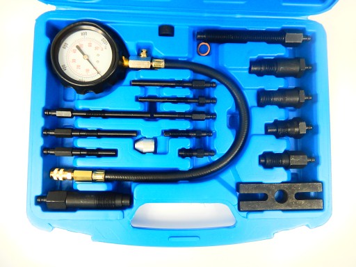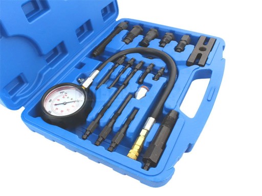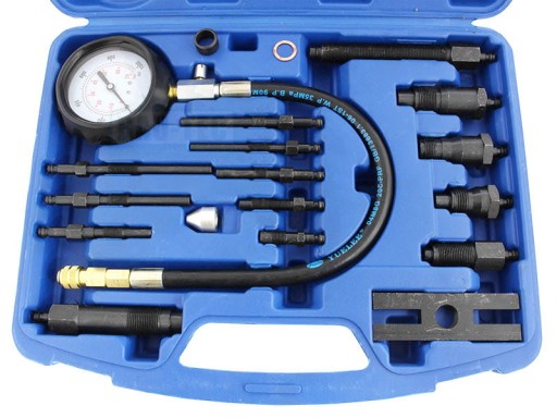- Miernik ciśnienia sprężania (Diesel) to profesjonalne narzędzie przeznaczone do pomiaru ciśnienia sprężania w silnikach wysokoprężnych (Diesla). Zestaw zawiera miernik ciśnienia, który umożliwia pomiar do 70 BAR (1000 PSI), przewód z szybkozłączem i zaworem zwalniającym, 4 adaptery montowane w miejscu wtryskiwacza, 9 adapterów montowanych w miejscu świecy żarowej oraz jeden adapter uniwersalny. Zestaw zawiera również mocowanie typu H, które pasuje do większości marek samochodów, co zapewnia uniwersalność i wszechstronność narzędzia.