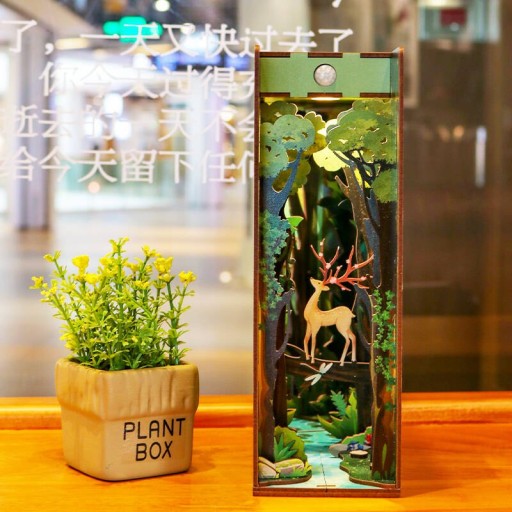 Tonecheer Składany Drewniany Model 3D LED - Book Nook Historia Lasu