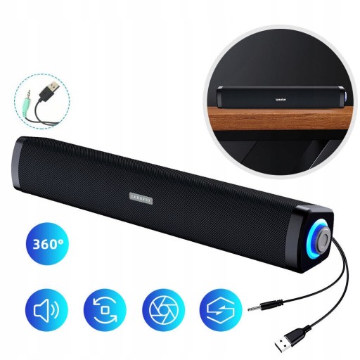 5. szeroka kompatybilność: soundbar obsługuje większość urządzeń ze standardowym gniazdem 3,5 mm, takich jak PC, komputer, laptop, tablet i smartfony. (Uwaga: wymagany jest zasilacz USB).
