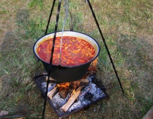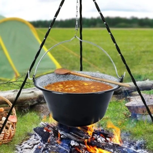 Kociołek wiszący węgierski emaliowany garnek na ognisko grilla CZARNY 8l