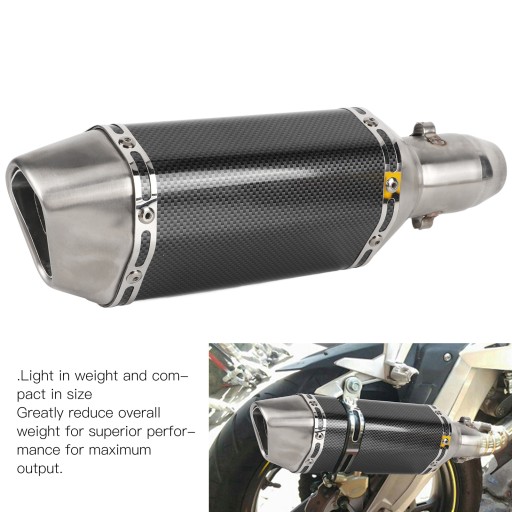 4. Konstrukcja z włókna węglowego: rura wydechowa motocykla jest specjalnie zaprojektowana z wyglądem z włókna węglowego, jest stylową i luksusową ozdobą twoich pojazdów.