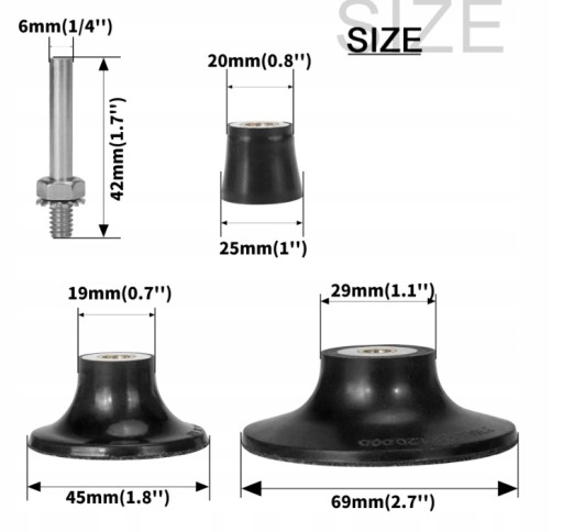 Опорный диск ROLOC диаметром 70 мм на шпинделе 6 мм Резиновая накладка для шлифовальной машинки