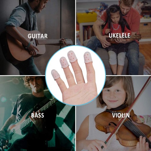 Szerokie zastosowanie: Silikonowe ochraniacze na palce gitara może być dobrze stosowana do wielu instrumentów strunowych, takich jak gitara akustyczna, gitara elektryczna, ukulele, bas, gitara klasyczna itp. Idealny zarówno dla dzieci, jak i dorosłych.