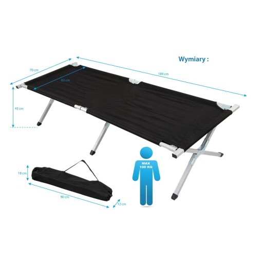 Aluminiowa konstrukcja łóżka jest lekka i bardzo prosta w składaniu i rozkładaniu, zajmuje niewiele miejsca, dzięki czemu jest łatwa w transporcie i przechowywaniu.