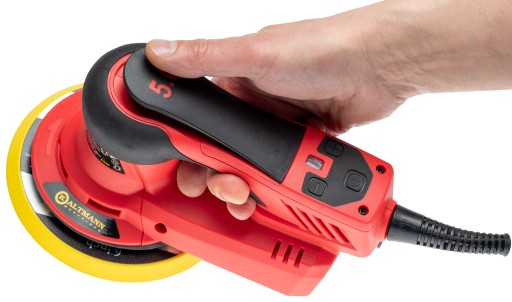 - Mniejsze zużycie papieru ściernego – Precyzyjne regulowanie docisku sprawia, że zużywasz mniej materiałów, oszczędzając czas i pieniądze.