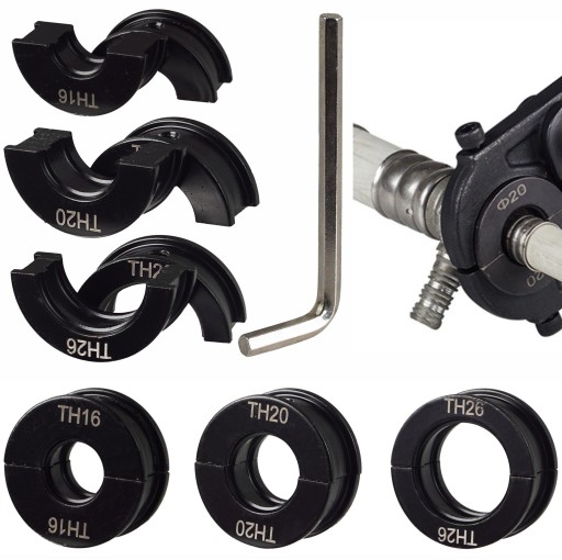 Wymienne szczęki pozwalają na pracę w pełnym zakresie średnic rur od 16 mm do 26 mm.