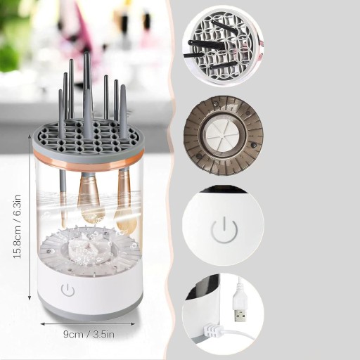 Kompaktowych rozmiarów maszynka do czyszczenia pędzli, szczotek kosmetycznych może być łatwo przechowywana i przenoszona. Jest wyposażona w kabel ładujący USB, dzięki czemu może być używana w różnych miejscach - łazience, sypialni, pracy, wyjazdach.