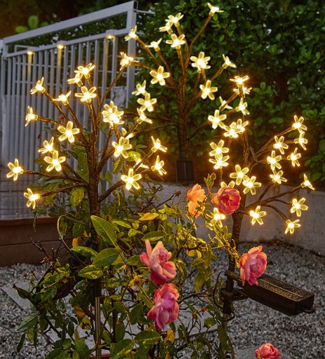 2шт Солнечные садовые фонари, вбитые, ветка цветущей сакуры, дерево, 20 светодиодов