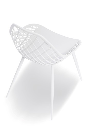 Ergonomiczny kształt kubełka krzesła odlany z jednej formy z ażurowym wycięciem na oparciu nadaje naszemu krzesło niebanalną formę a zarazem zwiewność i finezję w jednym. Pomimo wrażenia delikatnej formy atutem krzesła jest udźwig - 120 kg