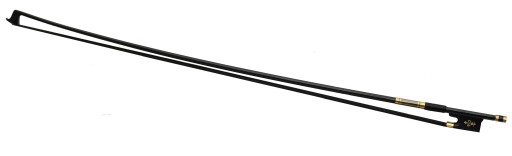 Rozmiar smyczka 4/4 o długości 74,5 cm i wadze 60 g. Smyczek w kolorze czarnym z widoczną fakturą włókna węglowego z naturalnym końskim włosiem. Posiada hebanową żabkę inkrustowaną francuską lilią, trzyczęściową śrubkę oraz metalową i skórkową owijkę. Dodatkowo metalowe elementy w kolorze złotym.