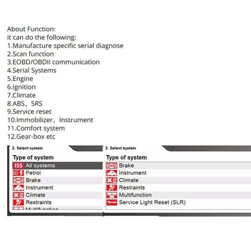 - Funkcja skanowania - Inteligentny System (ISS) automatycznie skanuje wszystkie systemy pojazdu i zbiorczo wyświetla kody usterek.