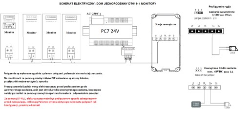 - Zasilanie domofonu: Z transformatora przez 2 przewody