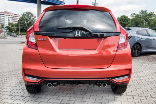 Stylizacyjne zaślepki tylnych halogenów, dzięki zestawieniu lustrzanego połysku chromowanej powierzchni z dynamiczną, ostrą linią nakładek sprawia, że tylny zderzak zyskuje stylową ramę, doskonale pasującą do nowoczesnego stylu Hondy Jazz IV. Listwy znakomicie komponują się z innymi elementami wykończenia samochodu, dzięki czemu ich zastosowanie pozwala uzyskać spójną, wyróżniającą samochód stylizację.