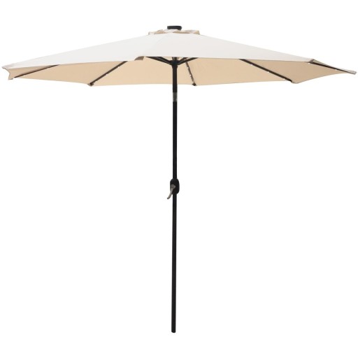 Wbudowane oświetlenie LED sprawia, że parasol może być używany również wieczorem. Daje to możliwość korzystania z ogrodu po zmroku, tworząc przyjemną, romantyczną atmosferę. Diody LED zasilane są panelem słonecznym umieszczonym na górze parasola, należy jednak pamiętać, że lampki będą prawidłowo działać tylko po naładowaniu akumulatorka w słoneczny dzień.
