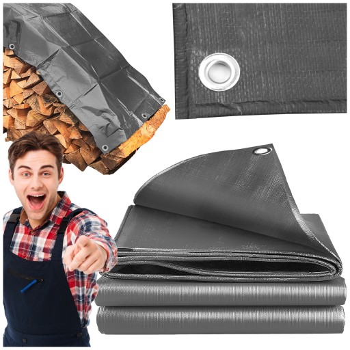 ✨ PLANDEKA TARAS GRUBA SZARA MOCNA wodoodporna 4x8m 120gr/m2 ✨