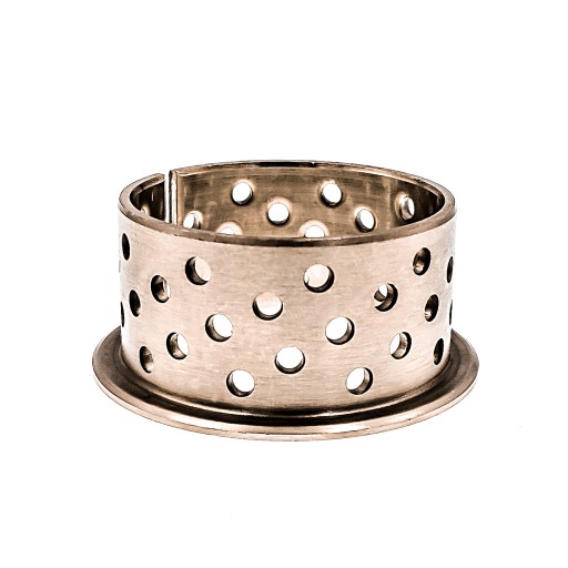 Wysokiej jakości tuleja wykonana z brązu, przeznaczona do pracy w trudnych warunkach. Nadaje się do pracy w ruchu obrotowym i wahadłowym. Posiada wysoką odporność na ścieranie i korozję. Otwory smarne rozmieszczone na całej powierzchni nośnej pozwalają szybko wytworzyć film smarny i w ten sposób zmniejszyć tarcie początkowe. Kołnierz zapobiega przesuwaniu się tulei przy obciążeniach wzdłużnych. Typ łożyska szczególnie odpowiedni do konstrukcji, w których występują duże obciążenia i stosunkowo powolne ruchy. Specjalne nacięcie wzdłuż tulei ułatwia montaż.