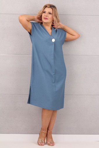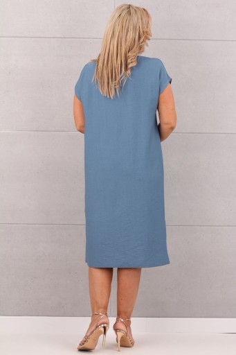 Elegancka, sukienka o prostym kroju, idealna na każdą okazję. Wykonana z wysokiej jakości materiału, który gwarantuje komfort noszenia przez cały dzień. Sukienka ma krótkie rękawy i osiąga długość do kolan, co nadaje jej uniwersalny charakter. Ozdobiona jest subtelną, złotą broszką przy dekolcie, która dodaje jej wyjątkowego uroku. To doskonały wybór dla kobiet ceniących klasykę i wygodę.