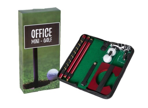 Zagraj w golfa w biurze! Praca bywa bardzo stresująca, trzeba więc się jakoś zrelaksować – ale jak to zrobić, nie wychodząc z biura? Nie ma chyba bardziej wytwornego sportu niż gra w golfa. Na szczęście, aby oddać się tej prestiżowej rozrywce, nie musisz biegać po wielkim polu golfowym i kupować drogiego sprzętu. Możesz zagrać we własnym biurze! Pole golfowe zawsze pod ręką Golf biurowy to pomysłowy zestaw, który zmieści się nawet w najmniejszym pomieszczeniu. Rozegraj więc partyjkę pomiędzy stresującymi spotkaniami biznesowymi! To świetny pomysł na praktyczny i oryginalny prezent na każdą okazję.