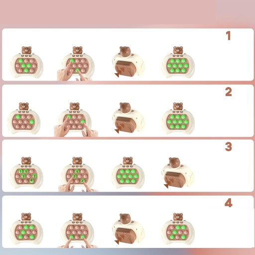Ta maszyna do szybkiej gry dla dzieci zawiera cztery tryby gry (tryb przełamania, tryb pamięci, tryb punktacji i tryb dla wielu graczy), pozwalając dzieciom rozwijać zdolność reakcji i pamięć podczas rozrywki. Odpowiednie dla dzieci w wieku 3 lat i starszych, są idealnymi opcjami interakcji rodzic-dziecko.