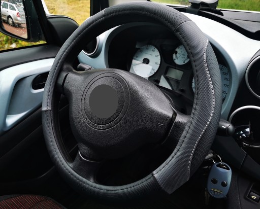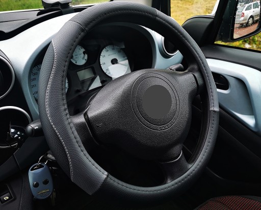 Pokrowiec na kierownicę wykonany z wysokiej jakości ekoskóry perforowanej.