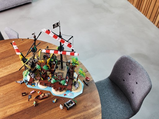 - Zbuduj model wyspy z wrakiem z zestawu LEGO® Ideas Piraci z Zatoki Barakud (21322) do zabawy lub postawienia na półce. Wyspę można podzielić, a jej części przestawić, by odsłonić ukryty skarb piratów.