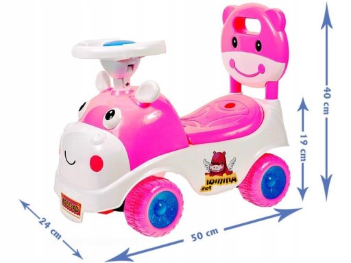 - Wymiary jeździka: dł. 50 x szer. 24 x wys. z oparciem 40cm