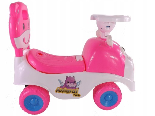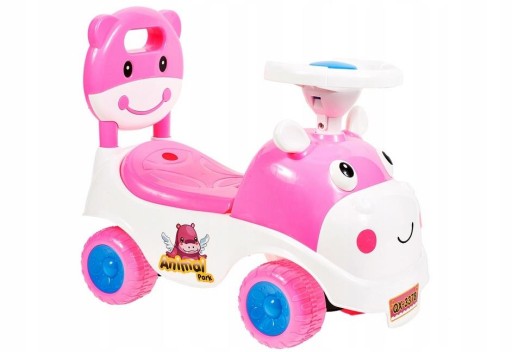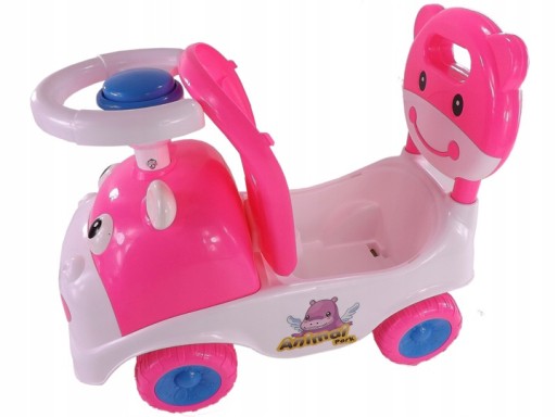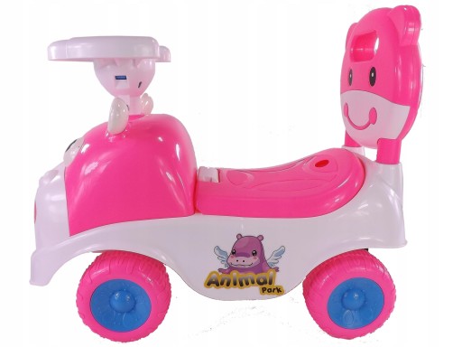 - Jeździk HIPCIO z uśmiechniętą buźką o słodkim wyglądzie zapewniający ogromną frajdę dla dziecka. Wyposażony jest w schowek pod siedzeniem, klakson w kierownicy oraz wygodne siedzenie z wyjmowanym oparciem.