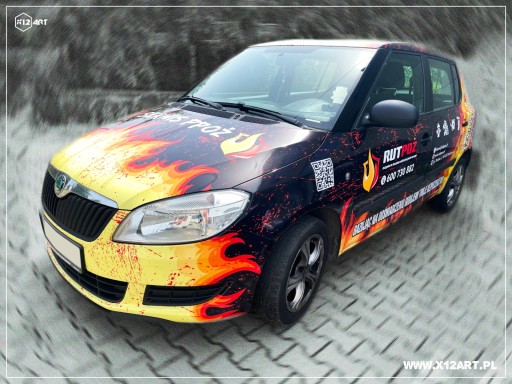 Przedmiotem aukcji jest Projekt reklamy na CAŁY samochód DRIFTOWY BOKI (drzwi)+ TYŁ+ SZYBY + DACH+PRZÓD