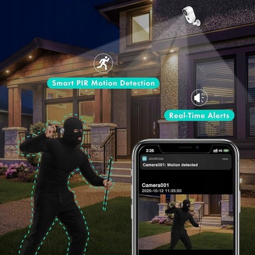 - 【Zaawansowane wykrywanie ruchu PIR i alerty w czasie rzeczywistym】Kamera bezpieczeństwa jest wyposażona w zoptymalizowane algorytmy, które znacznie poprawiają rozpoznawanie człowieka, aby zmniejszyć fałszywe alarmy. Opóźnienie nagrywania i alarmu po wykryciu jest zmniejszone o około 60% w porównaniu z innymi kamerami. Powiadomienia alarmowe mogą być wysyłane w czasie rzeczywistym do Ciebie i udostępnionych użytkowników, gdziekolwiek jesteś.