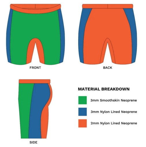 Wypornościowe spodenki wykonane w 100% z neoprenu o grubości od 3 do 2 mm. Pomogą Ci utrzymać prawidłową pozycję w wodzie, efektywniej pracować nad techniką pływania oraz zastąpią częściowo piankę triathlonową gdy woda jest zbyt ciepła.