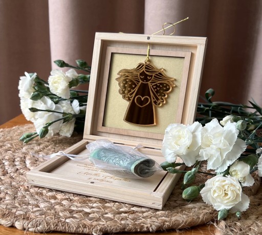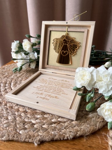Zamykane, sosnowe pudełko z życzeniami i spersonalizowaną grafiką to idealny pomysł na prezent.