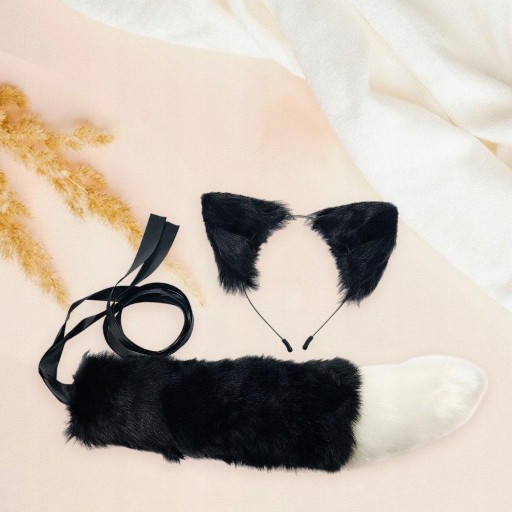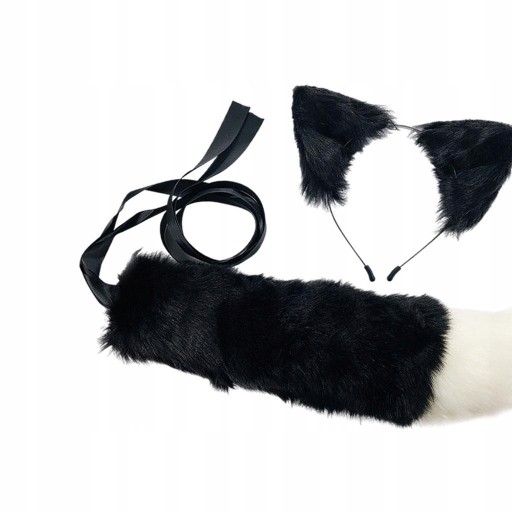2xplush Faux Fur Kot Uszy I Zestaw Ogon Halloween Fancy Dress Cosplay Costume Black