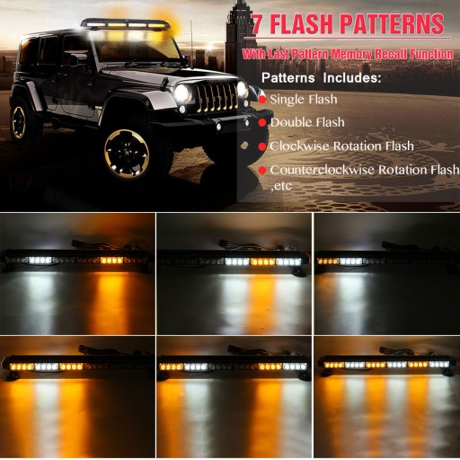 28-calowy 54-LED samochodowy ostrzeżenie awaryjne Beacon Strobe Light Bar Wodoodporny bursztynowy i biały