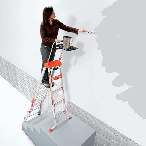 Stopień Select Step jest wykonany z lekkiego aluminium. Dzięki możliwości zmiany pozycji i regulacji wysokości, Select Step może być używany jako drabina schodowa, drabina 90° i drabina schodowa. Drabinę można wydłużyć do 2,44 metra.