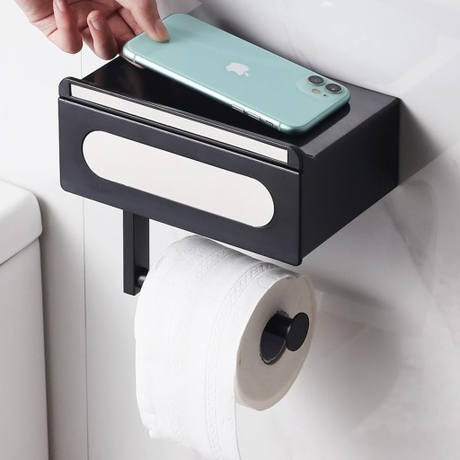 🧻Wielofunkcyjny uchwyt na papier toaletowy, z szufladą i blatem na drobne przedmioty. Dźwignię rolki papieru toaletowego można umieścić po lewej lub prawej stronie.