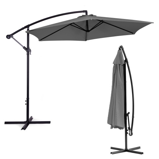 PARASOL OGRODOWY DUŻY NA WYSIĘGNIKU SKŁADANY 3M SZARY 6 ŻEBER